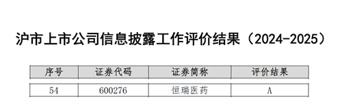 与此同时,在上海交易所公布的2024-2025年度沪市上市公司信息披露工作评价中,AG亚游医药再次荣获最高评级——A级。